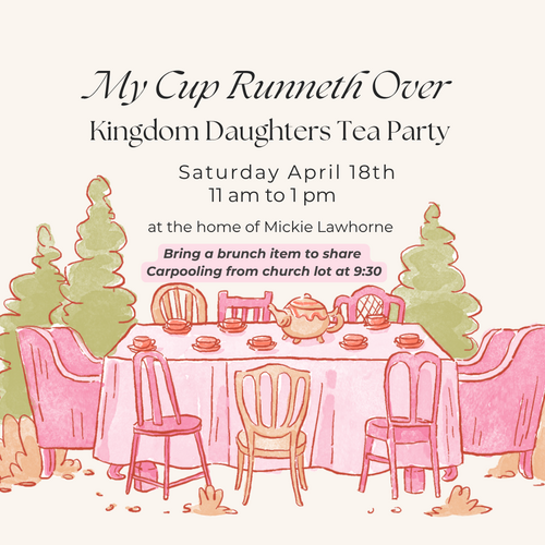 Kingdom Daughters Gatherings take place each month as a special time for women to come together, grow in faith, and build meaningful, life-giving relationships. Each gathering creates space to slow down and connect—both with one another and with the Lord—through intentional moments of prayer, encouraging devotionals, and heartfelt conversation. Whether you’re new or have been attending for years, these gatherings are a place to be refreshed, supported, and strengthened in your walk with Jesus. Come join us as we seek Him together and grow as women of faith.